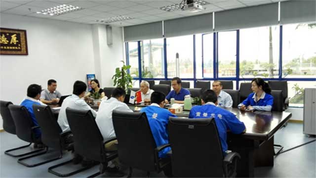 2014年12月23日,惠州雷曼工業(yè)園內(nèi)人聲鼎沸,雷曼光電迎來(lái)了一批特別的客人——來(lái)自李漫鐵董...