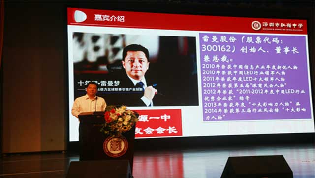2017年5月18日下午18:30,雷曼股份李漫鐵董事長受邀前往紅嶺中學(xué)高中部開展主題為《理想...