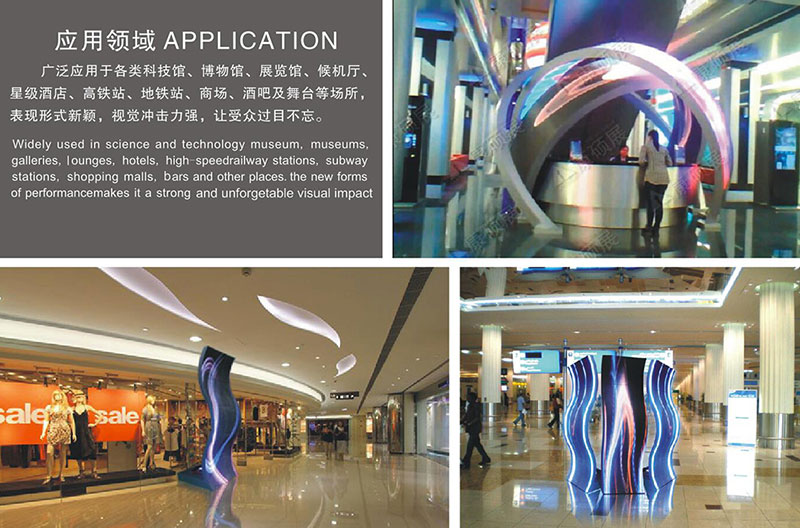 LED柔性屏,俗稱LED軟屏,其柔軟的模組特點使其安裝形式多樣,可安裝在任意曲面的場合下,其優(yōu)勢是常規(guī)模組無法比擬的。