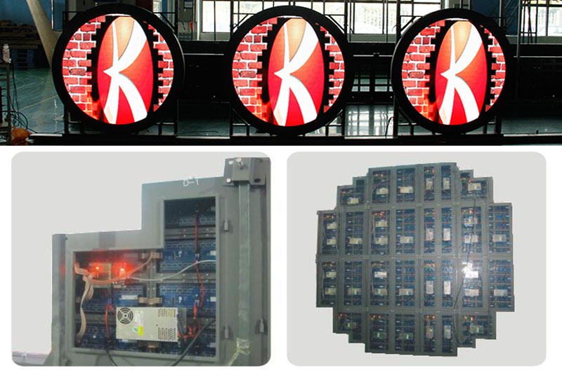 圓形屏是根據(jù)現(xiàn)場和客戶要求定制的一款異形LED顯示屏,進(jìn)行文字、圖片、視頻等信息播放,應(yīng)用在舞臺、演播室、酒店、機(jī)場、路燈廣告等LED場所,根據(jù)直徑要求,可做成戶外室內(nèi)全彩屏的有P16、P10、P8、P7.62、P6.25、P6、P4、P3、P2.5等不同像素密度顯示屏。不同點(diǎn)間距的LED顯示屏對顯示效果有區(qū)別,像素密度越高,畫面細(xì)節(jié)越容易表現(xiàn)。