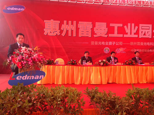 2012年11月29日,對于雷曼光電來說可謂是企業(yè)戰(zhàn)略目標實現(xiàn)的又一里程碑時刻。作為雷曼光電的大型研發(fā)生產(chǎn)基地,惠州雷曼光電工業(yè)園在惠州仲愷高新區(qū)東江產(chǎn)業(yè)園隆重舉行開業(yè)典禮。惠州市政府副市長劉冠賢,惠州市政協(xié)副主席鄧穗玲,惠州仲愷高新區(qū)委副書記、管委會主任楊鵬飛,惠州仲愷高新區(qū)委副書記、東江產(chǎn)業(yè)園管委會主任盧偉航,深圳市科創(chuàng)委副主任朱建平,中國光學(xué)光電子行業(yè)協(xié)會LED顯示應(yīng)用分會理事長關(guān)積珍,中超聯(lián)賽股份公司副總經(jīng)理朱琪林,以及自海內(nèi)外的三百余位領(lǐng)導(dǎo)、嘉賓,惠州、深圳各界媒體應(yīng)邀出席盛大的開園慶典。