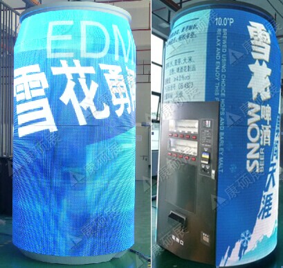 康碩展2013年研發(fā)設計的LED柱狀顯示屏(易拉罐),專為工程項目設計,廣泛應用各類商場、展會展廳、酒店、地鐵站、機場等場所??呻S意播放廣告視頻和圖像文字,把各種信息實時、同步、清晰地展示在觀眾前面。作為一款精準市場應用中的個性化產品,可配合自動售賣機一起使用,產品極具創(chuàng)新性、節(jié)能環(huán)保,不僅經濟效益及社會效益顯著,而且實用價值高,屬國內同行首創(chuàng)。