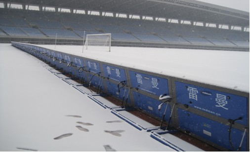 在紛揚(yáng)的雪花中、瑟瑟寒風(fēng)里,如溜冰場(chǎng)般的場(chǎng)地中,遼寧宏運(yùn)隊(duì)和河南建業(yè)隊(duì)揭開(kāi)了中超聯(lián)賽新賽季的帷幕。雷曼光電球場(chǎng)屏在2012中國(guó)足球超級(jí)聯(lián)賽中閃耀登場(chǎng),為比賽氛圍大增色彩。