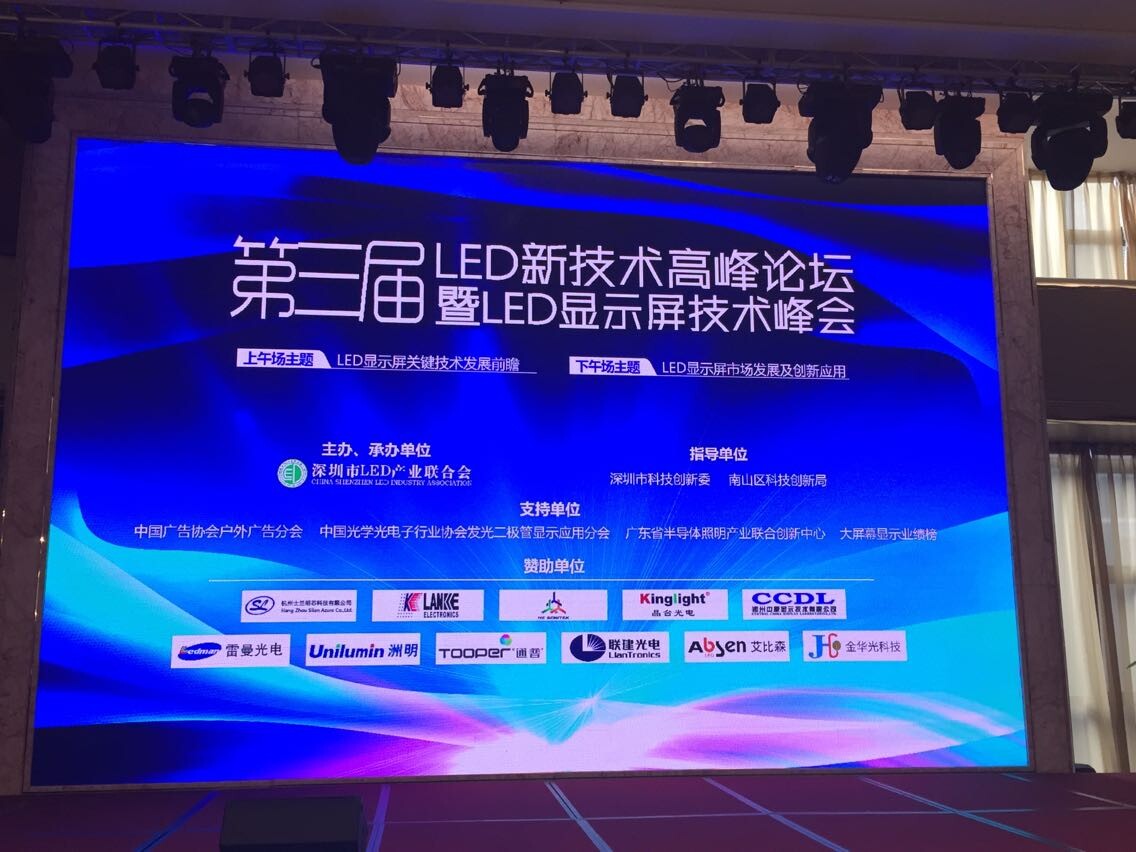 2015年4月24日,由深圳市LED產(chǎn)業(yè)聯(lián)合會主辦的“LED新技術(shù)高峰論壇暨LED顯示屏技術(shù)峰會”在深圳三諾智慧大廈順利召開。會議以LED顯示屏技術(shù)創(chuàng)新為議題,行業(yè)專家、技術(shù)精英、商界領(lǐng)袖及近300名從業(yè)人員參加了此次行業(yè)盛會。