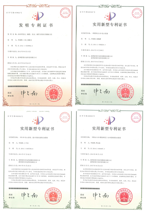 近期,雷曼光電再獲得4項(xiàng)專利,1項(xiàng)發(fā)明專利和3項(xiàng)實(shí)用新型。截止日前,雷曼光電共擁有科技專利179項(xiàng),其中發(fā)明專利64項(xiàng),實(shí)用新型專利80項(xiàng),外觀專利35項(xiàng)。新增四項(xiàng)專利分別為:ZL 201210339802.6 “功率型發(fā)光二極管、發(fā)光二極管支架及其制備方法”,ZL 201420464087.3 “一種防水LED模組和用于LED模組的防水裝置”,ZL 201420365700.6 “一種LED顯示系統(tǒng)、接口裝換電路及其模組”,ZL 201420582224.3 “一種箱體及LED顯示設(shè)備”。