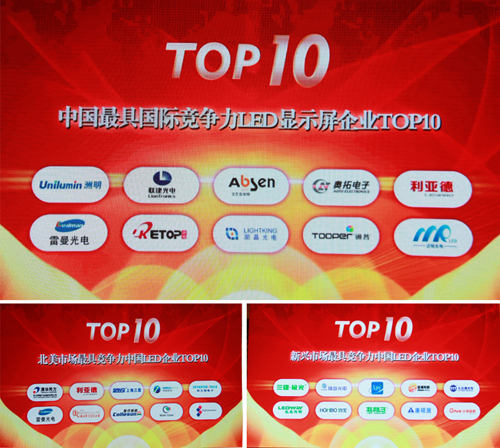 此次“中國(guó)LED企業(yè)國(guó)際競(jìng)爭(zhēng)力TOP10”的評(píng)獎(jiǎng),雷曼光電憑借LED顯示屏產(chǎn)品在海外銷售的優(yōu)秀業(yè)績(jī)榮獲“中國(guó)最具國(guó)際競(jìng)爭(zhēng)力LED顯示屏企業(yè)top10”和“北美市場(chǎng)最具競(jìng)爭(zhēng)力中國(guó)LED企業(yè)TOP10”兩個(gè)獎(jiǎng)項(xiàng);雷曼光電控股子公司康碩展憑借在LED異形顯示屏領(lǐng)域的突出表現(xiàn)榮獲了“新興市場(chǎng)最具競(jìng)爭(zhēng)力中國(guó)LED TOP10”的獎(jiǎng)項(xiàng)。