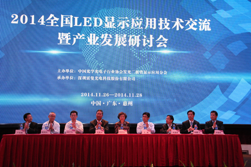 出席2014全國LED顯示應用技術交流暨產(chǎn)業(yè)發(fā)展研討會的主要領導和嘉賓有:中國半導體照明/LED應用聯(lián)盟秘書長、工信部電子信息司原副巡視員關白玉女士、惠州市人民政府黨組副書記/副市長王勝先生、中國光學光電子行業(yè)協(xié)會秘書長王琳女士、中國光學光電子行業(yè)協(xié)會LED顯示應用分會理事長關積珍先生、惠州市人民政府副秘書長林惠群先生、國家半導體照明工程研發(fā)及產(chǎn)業(yè)聯(lián)盟副主席唐國慶先生、深圳雷曼光電科技股份有限公司董事長兼總裁李漫鐵先生等。另外,還有來自全國各地240余名業(yè)內(nèi)代表出席本次大會