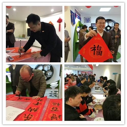 俗話說的好“無聯(lián)不成春,有聯(lián)春更濃”。寫對聯(lián)、送春福的環(huán)節(jié)更是熱鬧非凡,紅紅的紙兒,濃濃的墨香,深深的祝福,李董親自題筆寫下新春“?!焙汀俺休d天下創(chuàng)紀(jì)元,攜手共譜新篇章,雷曼盛世”對聯(lián),字里行間寓意著對雷曼美好未來的欺許和飽含著對雷曼人的深深祝福!在現(xiàn)場書法的魅力感染下,雷曼文人雅士們紛紛開始潑墨揮豪,一秀真跡,不論是楷體、行書、隸書……還是各人的自撰體,大家都在很用心寫下自己對新春最美好的祝福!
