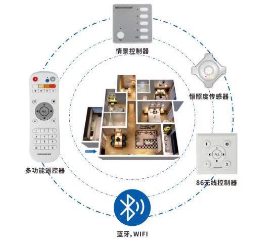 可根據(jù)不同場(chǎng)所的不同用光環(huán)境定制解決方案,并且可以一燈多用,多種模式可調(diào)節(jié),實(shí)現(xiàn)多種調(diào)節(jié)模式只需一個(gè)巴掌大的控制面板。也可在家庭局域網(wǎng)中使用,配合手機(jī)APP或天貓精靈等智能家具控制器實(shí)現(xiàn)智能語(yǔ)音控制,在手機(jī)上就可輕松調(diào)節(jié)用光環(huán)境,在您需要的時(shí)候給您舒適的光。