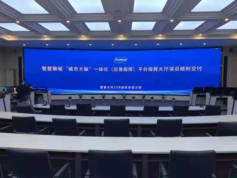 雷曼光電解決方案團隊綜合考量作業(yè)島及座椅位置、最佳視距、視角等多重因素,結合客戶“超高清顯示、各位置無死角觀看、聯動應急指揮、態(tài)勢管理、監(jiān)測預警、數據運營”等需求,為智慧聊城“城市大腦”一體化(應急指揮)平臺指揮大廳、會議室及新聞發(fā)布廳打造雷曼Micro LED超高清顯示屏,兩屏相輔相成,確保聊城“城市大腦”信息的即時反饋、會議決策的高效傳達,進而高效協同,提升聊城城市治理能力水平。