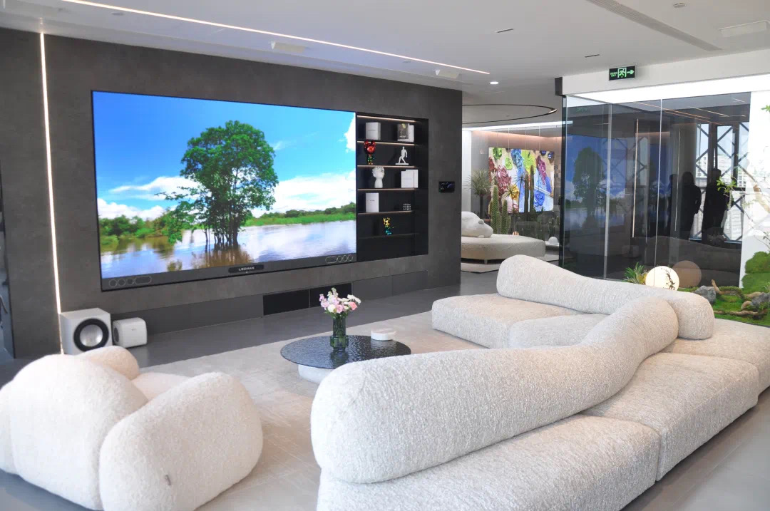 走進(jìn)店內(nèi),獨(dú)樹(shù)一幟的設(shè)計(jì)風(fēng)格,極具空間感的區(qū)域規(guī)劃搭配黑科技產(chǎn)品——2臺(tái)138吋雷曼Micro LED超高清家庭巨幕坐鎮(zhèn)C位,致力打造豪華客廳、私人家庭影院場(chǎng)景,為高端用戶(hù)帶來(lái)全新沉浸式體驗(yàn)的同時(shí)更帶來(lái)了品質(zhì)生活的解答方法。