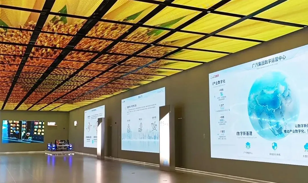 來到數(shù)字區(qū),可直觀感受廣汽集團的數(shù)字產(chǎn)業(yè)化成果。數(shù)字區(qū)安裝的4塊COB小間距屏,分別承播廣汽集團數(shù)字運營中心、責(zé)任廣汽、可持續(xù)的智慧能源生態(tài)及下一代平臺架構(gòu)的概況,助力參觀者進一步深入了解廣汽。