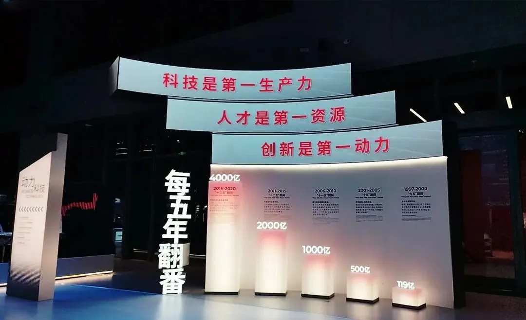 動力科技區(qū)主要展示廣汽自研動力總成技術(shù)成果。展示墻區(qū)域展示廣汽集團“每五年翻番”業(yè)績及發(fā)展歷程,柔性屏顯示品牌標語及發(fā)展理念。參觀者可以更直觀感受到廣汽集團近年來的高速發(fā)展,以及日益提升的品牌影響力。