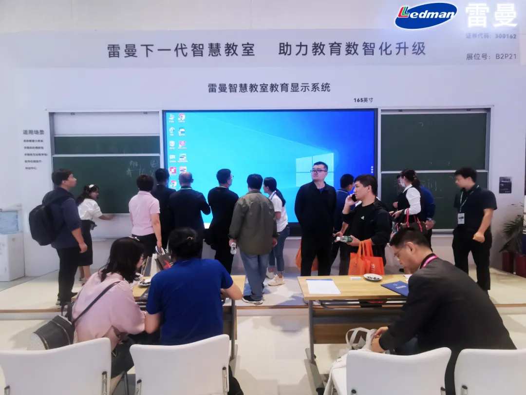 展會(huì)現(xiàn)場(chǎng),超大尺寸的165英寸雷曼智慧教室教育顯示系統(tǒng)十分吸睛,參展觀眾紛紛上前親身體驗(yàn)這一系統(tǒng)的魅力。這一系統(tǒng)通過(guò)結(jié)合超大尺寸顯示面板、自研軟硬件和創(chuàng)新性交互等先進(jìn)技術(shù),為師生提供了更豐富、更具互動(dòng)性的教學(xué)課堂,適用于大中型的多媒體教室、階梯教室、報(bào)告廳、培訓(xùn)中心等。
