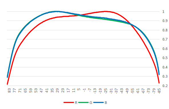 圖3、Mini-LED RGB裸晶芯片長邊方向光型分布圖