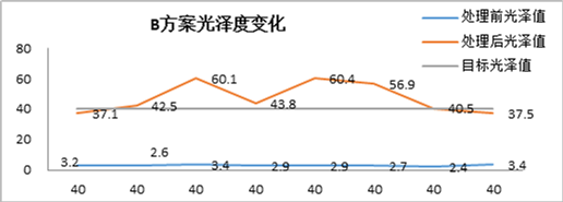 圖6b、B方案光澤度變化曲線圖