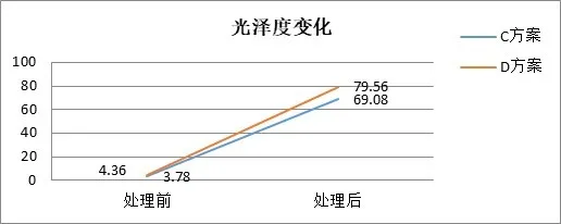 圖6d、C方案和D方案的光澤度數(shù)據(jù)對比