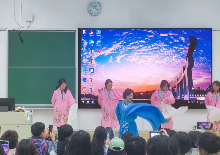 “各位同學(xué)今天有福了,學(xué)校非常支持我們這堂課程,特意安裝了LED大屏,讓每位來聽課的同學(xué)都能夠有更好的體驗,希望同學(xué)們能夠通過這堂課更加深入了解并喜愛上贛劇。”陳俐老師感受到了同學(xué)們的熱情,在課程正式開始前為同學(xué)們介紹教室的新變化。