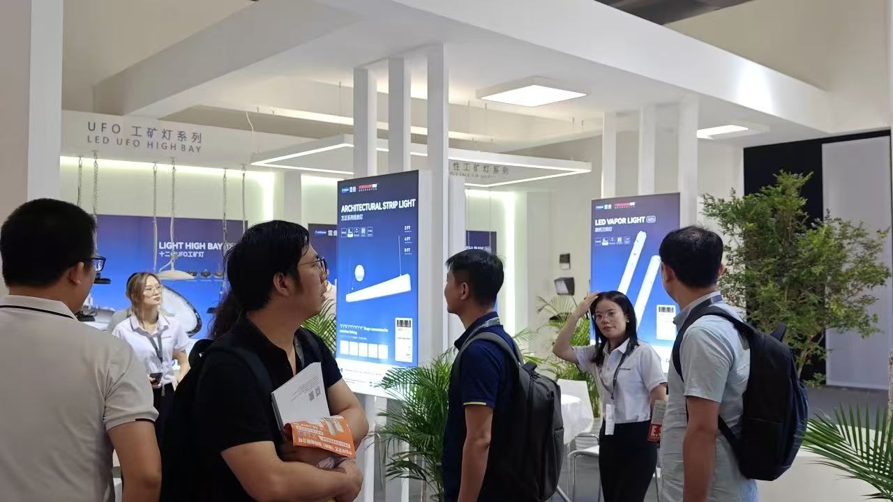 從商超、辦公室到工業(yè)倉庫、公園庭院等應用場景,分別展出LED線條燈、面板燈、工礦燈、外墻燈等近70多種照明產(chǎn)品,覆蓋用戶多元化應用照明需求。其中如壓鑄款UFO工礦燈,特別適用于高溫高濕的工業(yè)環(huán)境,節(jié)能效率較傳統(tǒng)UFO工礦燈提升30%。