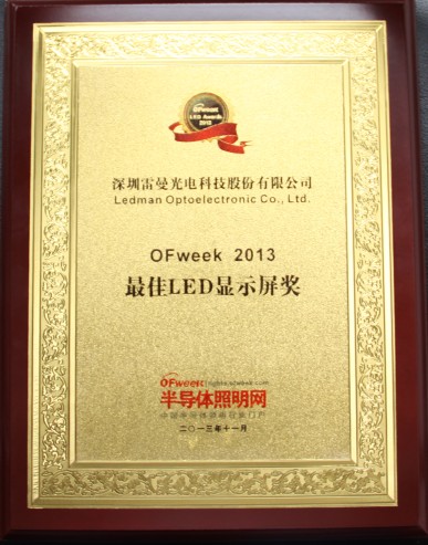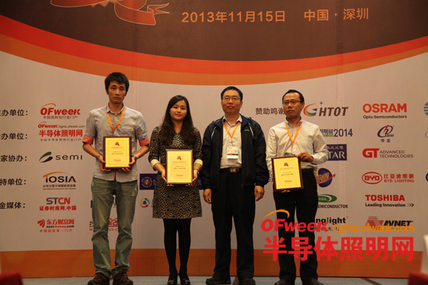 2013年11月15日,由OFweek中國(guó)高科技行業(yè)門(mén)戶(hù)主辦,OFweek半導(dǎo)體照明網(wǎng)、OFweek照明網(wǎng)承辦的“OFweekLEDAwards2013年度評(píng)選活動(dòng)”頒獎(jiǎng)典禮在深圳麗思卡爾頓酒店隆重舉行。