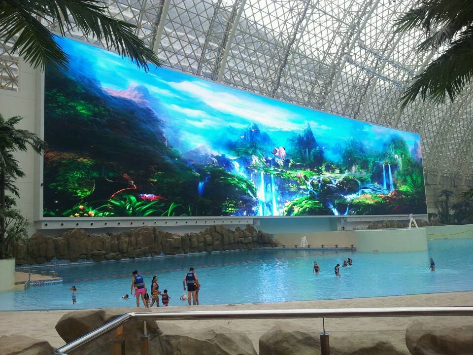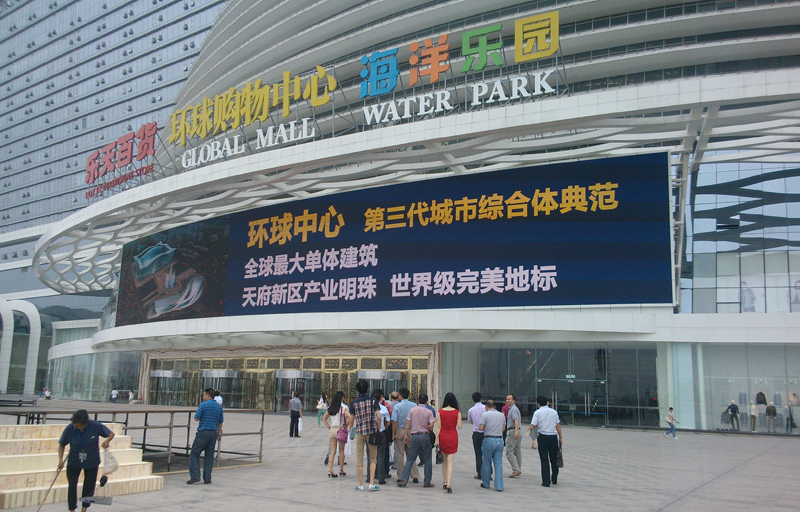 近日,兩塊P25、P16 LED超大顯示屏成功亮相成都新地標(biāo)建筑——新世紀(jì)環(huán)球中心,其中位于環(huán)球中心海洋樂園內(nèi)的P25LED顯示屏總面積達(dá)4080平米,是目前全球最大的室內(nèi)高清LED顯示屏,并計(jì)劃申報(bào)吉尼斯世界紀(jì)錄。LED顯示屏炫彩奪目的顯像效果為集娛樂、購(gòu)物、休閑諸多功能于一體的新世紀(jì)環(huán)球中心增色不少,使得環(huán)球中心更具現(xiàn)代感和商業(yè)氣息。